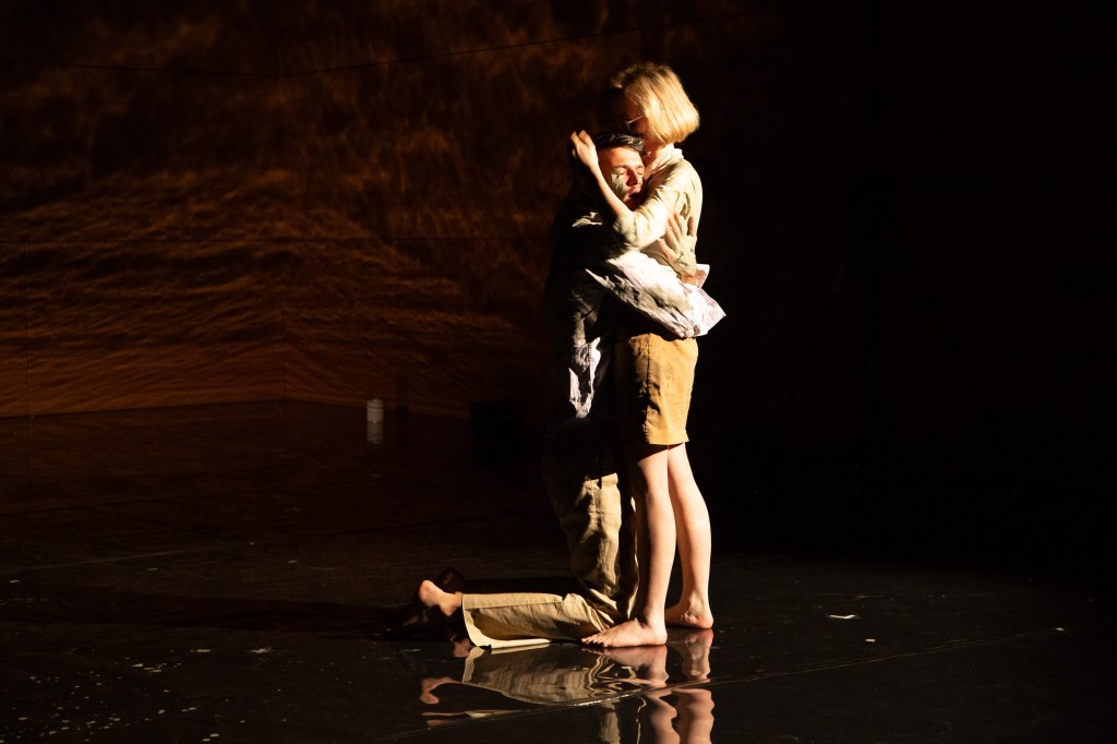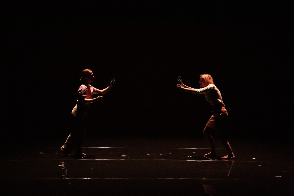 The surface is a smooth, gleaming expanse. Naked skin that has not yet learned. It is the threshold between you and me, the shifting zone where our boundaries meet, that unfathomable chiaroscuro. It is the encounter between an old world and a new one, the present gazing back at its recent past, translating familiar gestures through unfamiliar paradigms. At the moment of contact, the trace appears. It spreads across bodies, then across the ground, turning this smooth surface into a battleground at times, a playground at others. How do we explore and navigate this mutable gray zone?